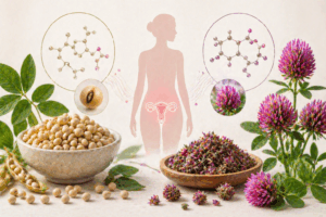 Fytoestrogény sú prirodzene sa vyskytujúce rastlinné látky, ktoré majú schopnosť interagovať s estrogénovými receptormi. Najviac skúmané sú najmä izoflavóny zo sóje a ďateliny červenej. Klinické štúdie a metaanalýzy naznačujú, že fytoestrogény môžu u niektorých žien prispieť k zmierneniu vybraných menopauzálnych ťažkostí, najmä návalov tepla a vaginálneho diskomfortu, pričom ich účinok býva pozvoľný a závisí od pravidelného užívania. V tomto kontexte predstavujú fytoestrogény racionálnu súčasť komplexnej starostlivosti o ženu v perimenopauze a menopauze [1].
